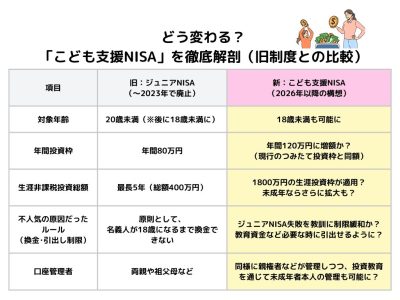 こども支援NISAとは? 公開日: 2025.09.03 最終更新日: 2025.09.03 こちらの画像は、下記の記事で詳しく解説しています↓ こども支援NISA(こども向けNISA)とは?2027年度開始予定、ジュニアNISAからの変更点を解説 LINE友達に追加
