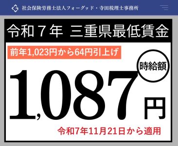 こちらの画像は、下記の記事で詳しく解説しています↓ 2025年(令和7年)三重県最低賃金は1,087円へ!11月21日適用