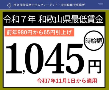 和歌山県最低賃金2025年(令和7年) 公開日: 2025.08.25 最終更新日: 2025.08.25 こちらの画像は、下記の記事で詳しく解説しています↓ 2025年(令和7年)和歌山県最低賃金は1,045円へ!11月1日適用 LINE友達に追加