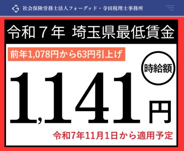 こちらの画像は、下記の記事で詳しく解説しています↓ 2025年(令和7年)埼玉県最低賃金は1,141円へ!11月1日適用