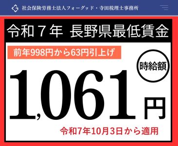 長野県最低賃金2025年(令和7年) 公開日: 2025.08.23 最終更新日: 2025.08.23 こちらの画像は、下記の記事で詳しく解説しています↓ 2025年(令和7年)長野県最低賃金は1,061円へ!10月3日適用 LINE友達に追加