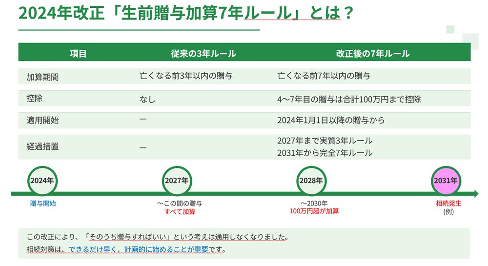- 2024年改正「生前贈与加算7年ルール」の具体的な内容と影響