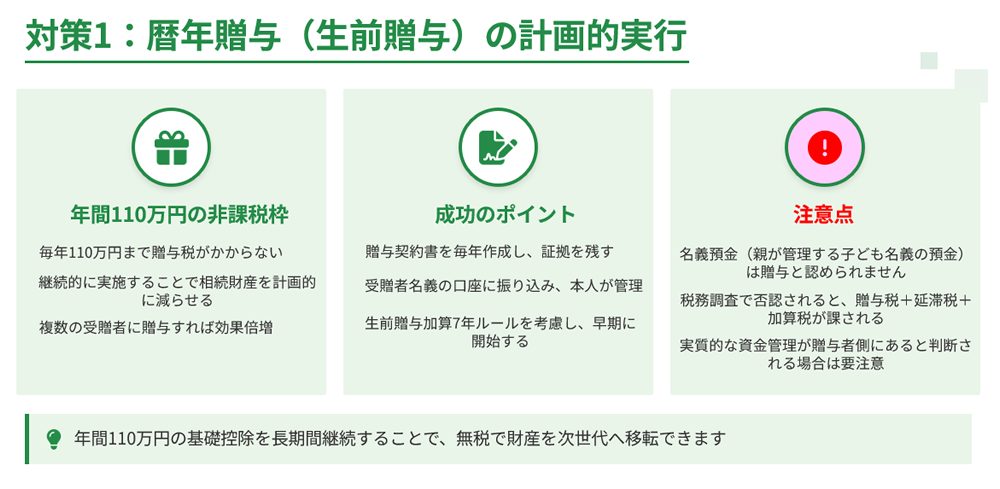 対策1:生前贈与(暦年贈与)の計画的実行