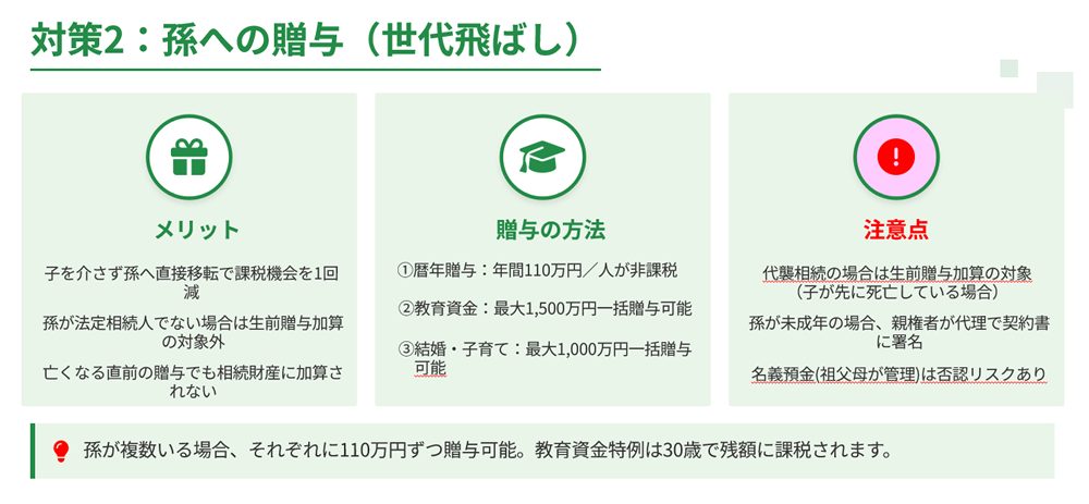 対策2:孫への贈与(世代飛ばし)