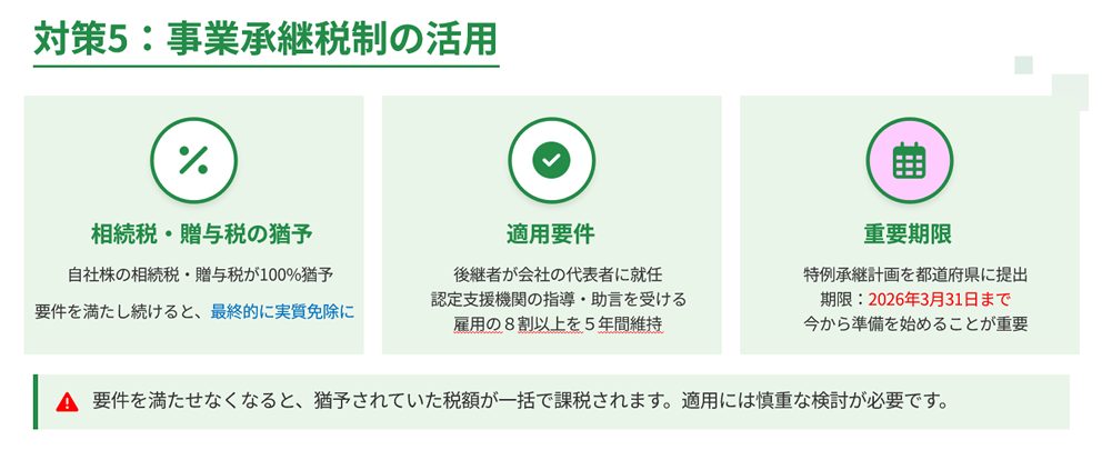 対策5:事業承継税制の活用