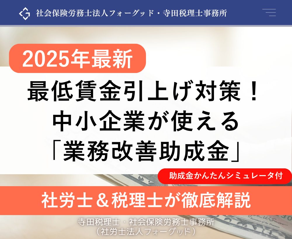 2025年最低賃金助成金業務改善助成金 公開日: 2025.08.09 最終更新日: 2025.08.09 こちらの画像は、下記の記事で詳しく解説しています↓ 2025年9月5日より業務改善助成金が大幅拡充!最低賃金・助成金ナビ LINE友達に追加