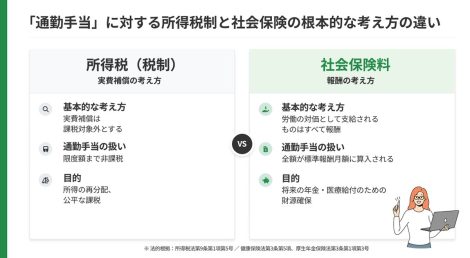 「通勤手当」に対する所得税制と社会保険の根本的な考え方の違い