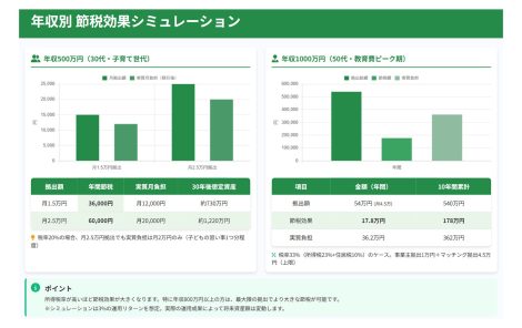 確定拠出年金制度改正年収別節税効果シミュレーション 公開日: 2025.10.26 最終更新日: 2025.10.26 こちらの画像は、下記の記事で詳しく解説しています↓ 確定拠出年金制度改正2026-2027完全ガイド|iDeCoよりマッチング拠出へ LINE友達に追加