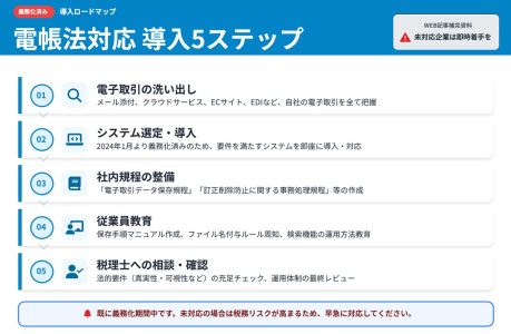 【2024年1月完全義務化】電子帳簿保存法対応完全ガイド|電子帳簿保尊法導入ステップ