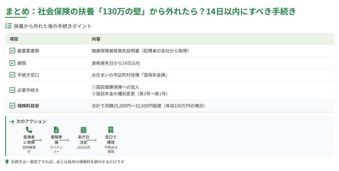 この記事が、扶養を外れた後の手続きに不安を感じていらっしゃる皆さまの助けになれば幸いです。