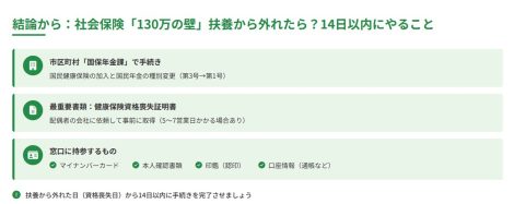 社会保険「130万の壁」扶養から外れたら?14日以内にやること