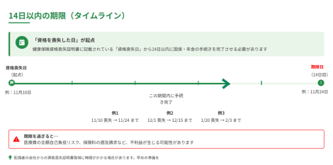 社会保険の扶養から外れたら14日以内に手続 公開日: 2025.11.17 最終更新日: 2025.11.17 こちらの画像は、下記の記事で詳しく解説しています↓ 社会保険の扶養から外れたらどうする?【14日以内厳守】の「国民年金・国民健康保険」切り替え手続き完全ガイド LINE友達に追加