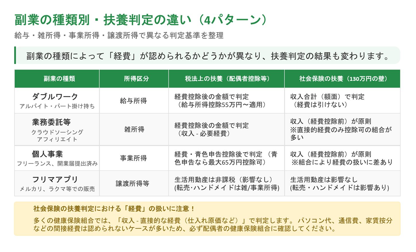 3. 副業の種類別・扶養判定の違い【4パターン】