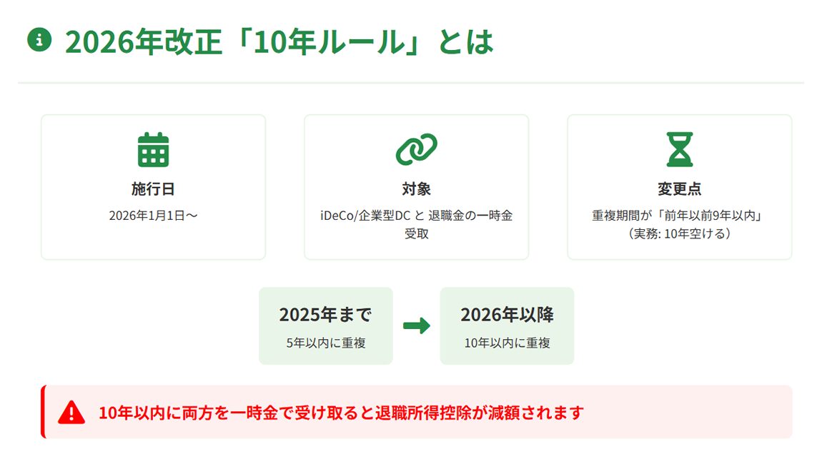 2026年の「10年ルール」改正は、iDeCoと退職金を両方受け取るすべての人に影響します。