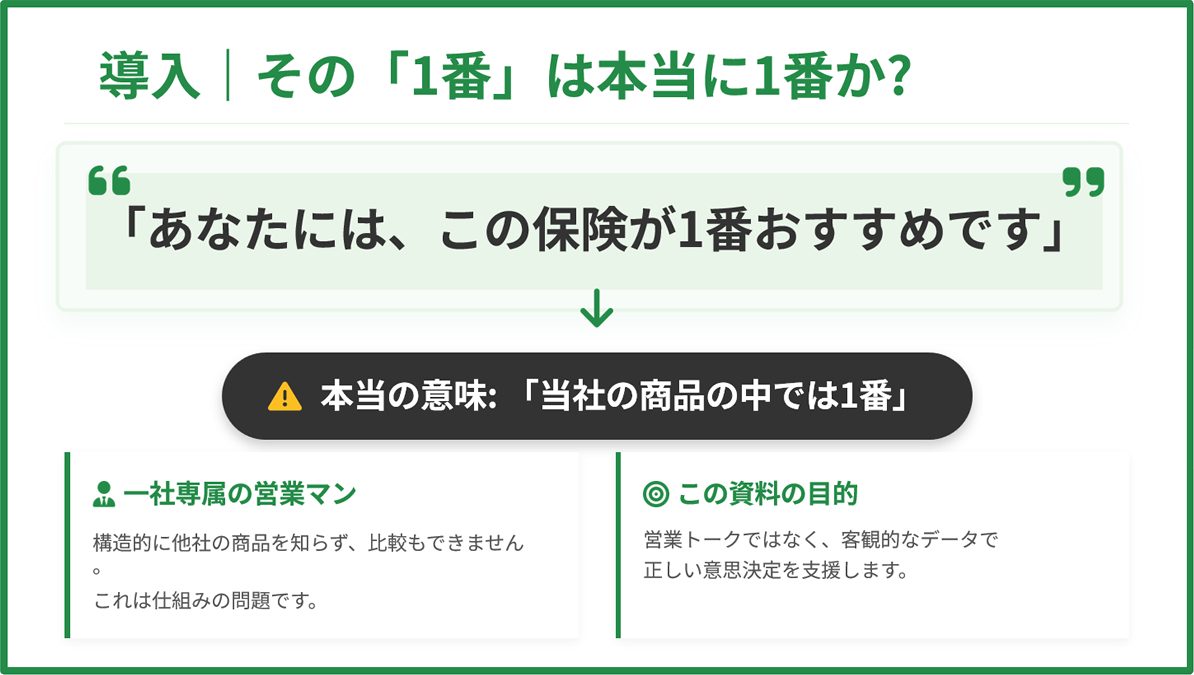 保険営業マンが絶対に言わない事実|「うちの商品の中では1番」「あなたにはこの保険が1番」の本当の意味