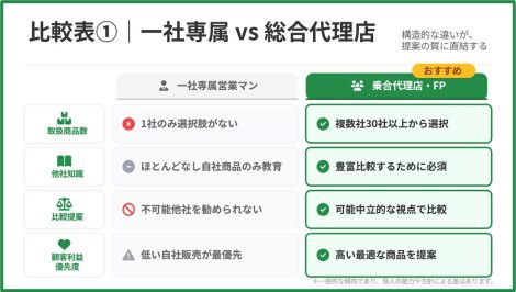 生命保険の仕組み|1生命保険会社専属と総合代理店との比較