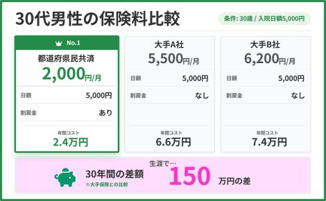 保険料比較|医療保険と都道府県民共済との月額保険料 公開日: 2025.11.30 最終更新日: 2025.11.30 こちらの画像は、下記の記事で詳しく解説しています↓ 保険営業マンが絶対に言わない事実|「うちの商品の中では1番」「あなたにはこの保険が1番」の本当の意味 LINE友達に追加