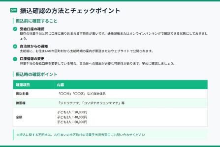 児童手当2万円上乗せ|振込確認方法 公開日: 2025.11.20 最終更新日: 2025.11.20 こちらの画像は、下記の記事で詳しく解説しています↓ 児童手当上乗せ2万円、いつ振り込まれる?全国自治体別支給スケジュール完全ガイド LINE友達に追加