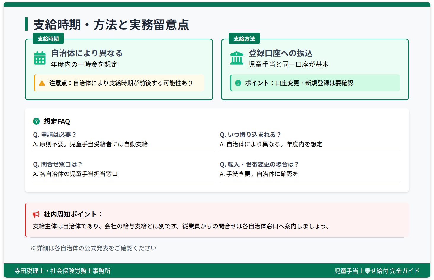 今回の「児童手当上乗せ」は、給付の仕組みや支給時期が自治体ごとに異なる可能性があり、「税務(給与計算)」と「労務(社会保険実務)」の両方に精通していなければ、従業員からの問い合わせに適切に対応できません。