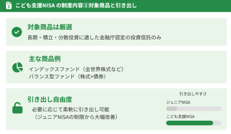 こども支援NISA|対象商品・引き出し可能 公開日: 2025.11.22 最終更新日: 2025.11.22 こちらの画像は、下記の記事で詳しく解説しています↓ こども支援NISAとは?0歳から始める非課税投資制度を徹底解説 LINE友達に追加