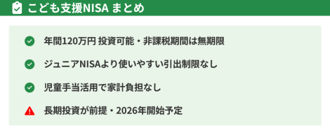 こども支援NISAまとめ 公開日: 2025.11.22 最終更新日: 2025.11.22 こちらの画像は、下記の記事で詳しく解説しています↓ こども支援NISAとは?0歳から始める非課税投資制度を徹底解説 LINE友達に追加