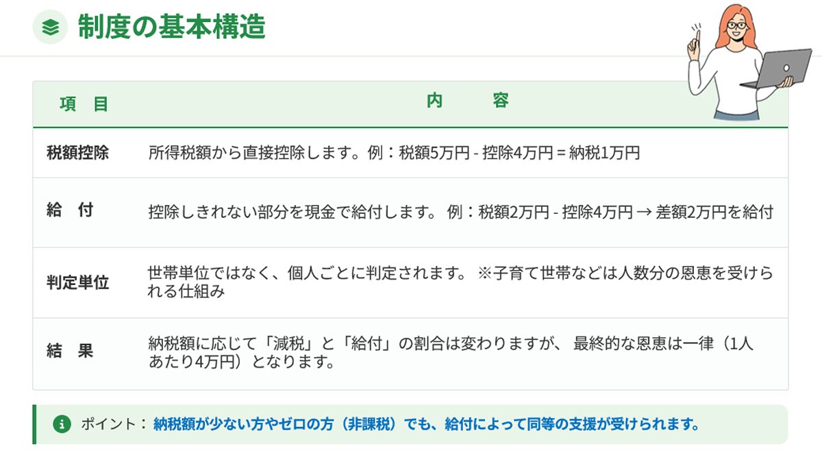 - 【2026年】給付付き税額控除とは?「1人4万円案」の根拠・定額減税との違い・国民会議の最新動向を税理士が徹底解説