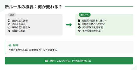 社会保険における被扶養者認定の改正 公開日: 2025.11.15 最終更新日: 2025.11.15 こちらの画像は、下記の記事で詳しく解説しています↓ 「年収130万円の壁」に新ルール!被扶養者認定、令和8年4月から労働契約書の年間収見込みで判定へ LINE友達に追加