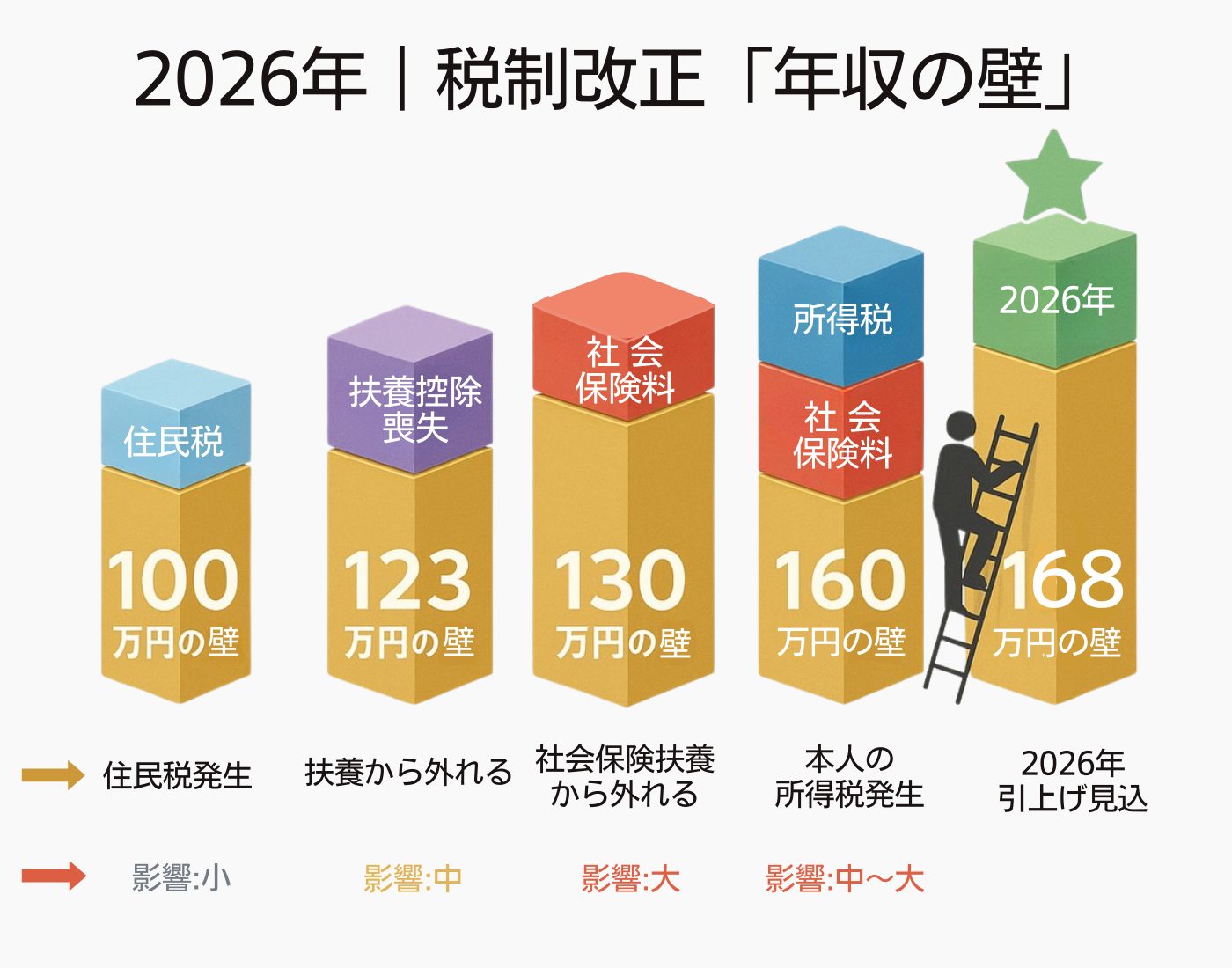 年収の壁が168万円に!【2026年度税制改正】160万円から8万円引き上げの影響とメリット・デメリット完全解説