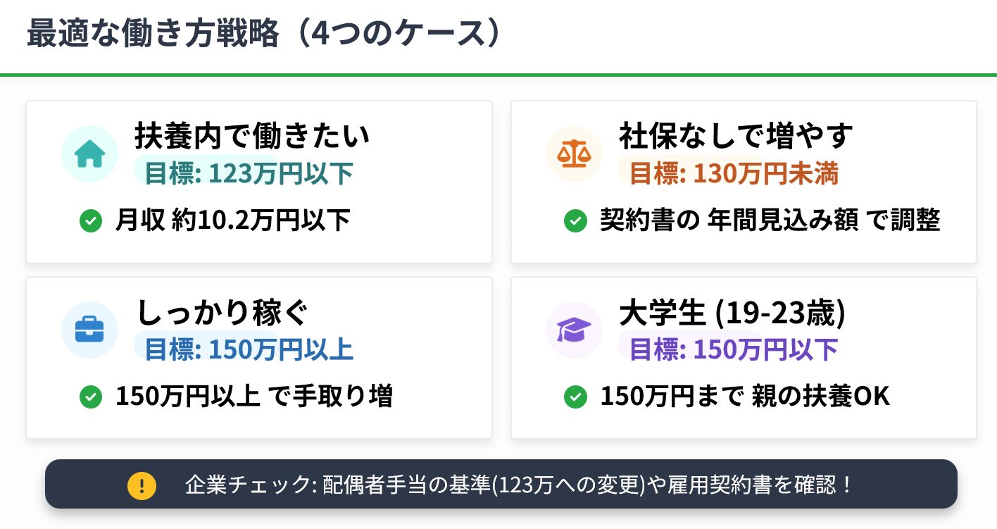 - 社会保険(130万円):2026年4月から労働契約ベース判定に変更