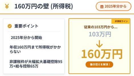 2025-2026年年収の壁完全ガイド|【所得税】160万円の壁:本人の所得税非課税ライン(2025年12月~)