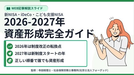 2026-2027年 資産形成完全ガイド 公開日: 2026.01.01 最終更新日: 2026.01.01 こちらの画像は、下記の記事で詳しく解説しています↓ 【2026年版】「お金に弱いまま」を卒業!新NISA・iDeCo・手当「何からやる?」優先順位完全ガイド LINE友達に追加