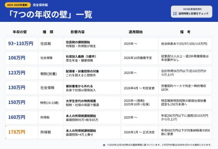 2025年-2026年版|パート『年収の壁』完全ガイド|手取りが減る分岐点は?|「7つの年収の壁」一覧