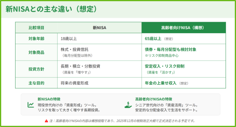 従来のNISAとの違い|高齢者向けNISA(プラチナNISA)の想定される特徴 公開日: 2025.12.10 最終更新日: 2025.12.10 こちらの画像は、下記の記事で詳しく解説しています↓ 高齢者向けNISA(プラチナNISA)とは?2026年度創設検討中の制度を税理士が解説 LINE友達に追加
