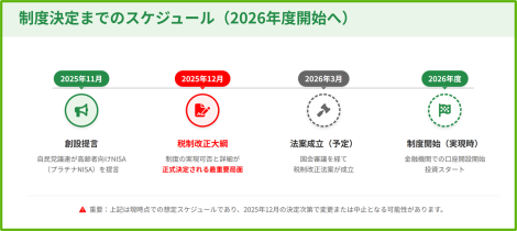 高齢者向けNISA(プラチナNISA):制度決定までのスケジュール 公開日: 2025.12.10 最終更新日: 2025.12.10 こちらの画像は、下記の記事で詳しく解説しています↓ 高齢者向けNISA(プラチナNISA)とは?2026年度創設検討中の制度を税理士が解説 LINE友達に追加