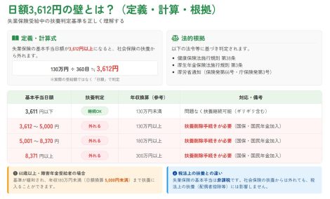 こちらの画像は、下記の記事で詳しく解説しています↓ 失業保険をもらうと扶養から外れる?日額3,612円の壁と再扶養手続き【2025-2026年版】