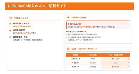 IDEDOマッチング拠出切替方法|確定拠出年金制度改正 公開日: 2025.11.01 最終更新日: 2025.11.01 こちらの画像は、下記の記事で詳しく解説しています↓ 【個人向け】確定拠出年金2026年改正で何が変わる?|30秒でわかる診断 LINE友達に追加